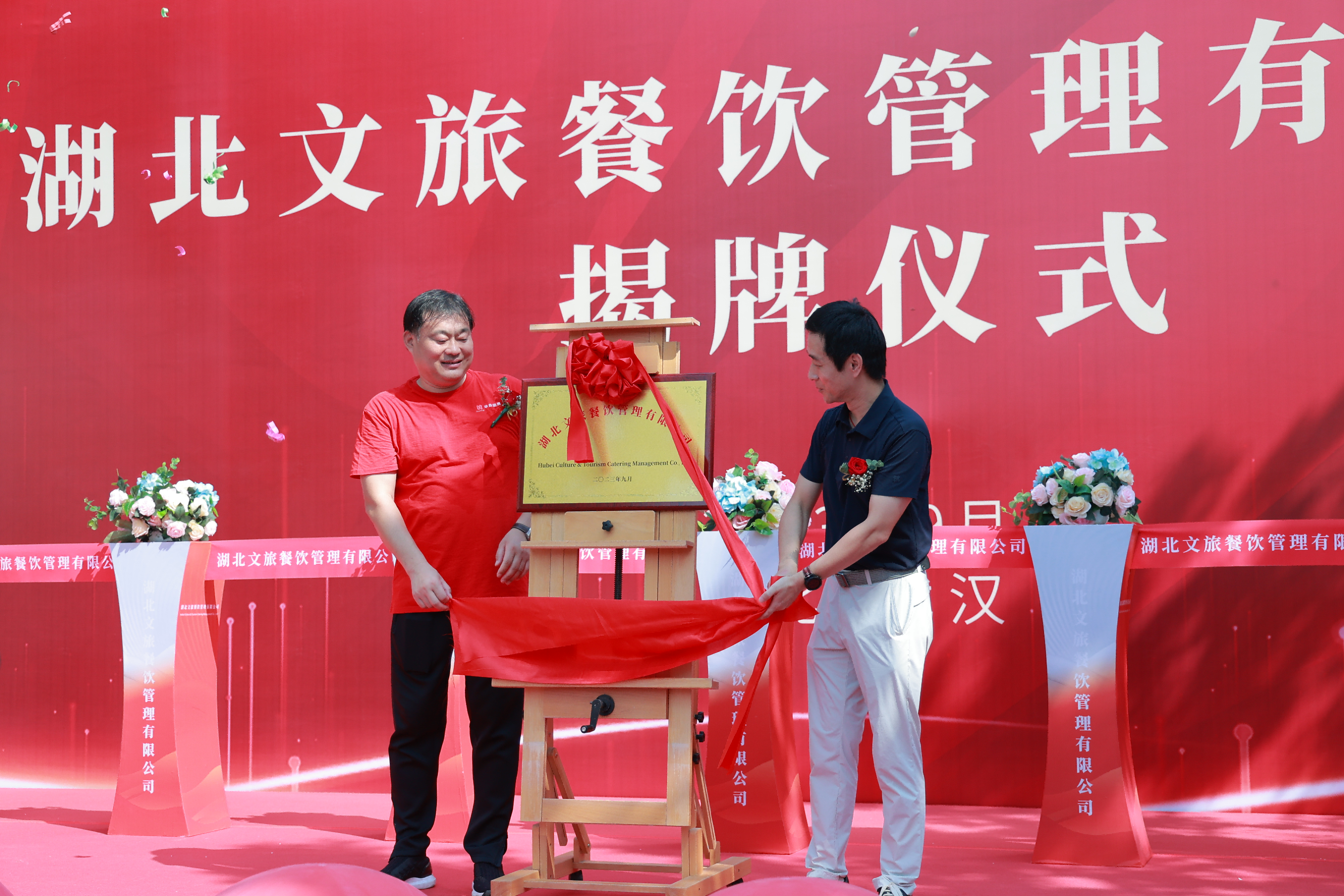 9月10日,湖北文旅餐飲管理有限公司揭牌儀式在武漢東湖綠道風(fēng)景區(qū)舉行。湖北飯店有限公司黨委書記、董事長譚冰,湖北華鼎團膳管理股份有限公司黨支部書記、董事長李清華出席參加揭牌儀式。