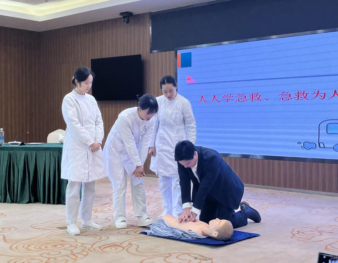 3月14日下午,湖北飯店邀請(qǐng)了武漢市第三醫(yī)院醫(yī)生、護(hù)士現(xiàn)場(chǎng)講授了突發(fā)猝死的原因和緊急救助手段,教學(xué)演示心肺復(fù)蘇、AED(自動(dòng)體外除顫儀)的使用方法、海姆立克急救法、外傷急救手段、骨折的初步固定等急救知識(shí)。