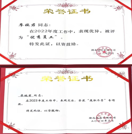 廖婉君同志2020年加入湖北飯店,擔任稅務(wù)和融資會計,她愛崗敬業(yè)、勇挑重擔、任勞任怨、開拓進取,以嫻熟通達的業(yè)務(wù)技能、吃苦耐勞的工作作風,迅速從青澀的新人成長為獨當一面的專業(yè)財務(wù)人員,在稅務(wù)與融資兩大核心工作中,她都取得了令人矚目的成績,獲得兩屆總經(jīng)理特別獎,一次優(yōu)秀員工,近日又被湖北文旅集團授予“青年崗位能手”榮譽稱號,她以實際行動踐行了新時期青年財務(wù)人員服務(wù)飯店高質(zhì)量發(fā)展的初心和使命,成為飯店全體青年員工的楷模。