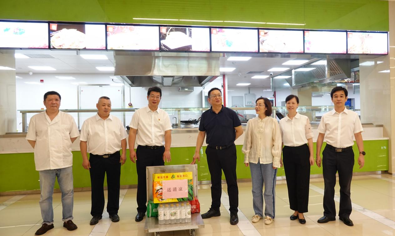 在二樓員工食堂,徐誠(chéng)為餐飲一線員工送上西瓜、飲料等防暑降溫物資,感謝大家不懼高溫“爐火”,堅(jiān)守一線,為洪山大廈入駐單位及飯店員工提供可口菜肴,為飯店轉(zhuǎn)型發(fā)展作出的努力。他指出,防暑降溫是夏季重要?jiǎng)趧?dòng)保護(hù)工作,直接關(guān)系一線員工的身體健康和企業(yè)的安全生產(chǎn)。飯店黨委要始終把安全生產(chǎn)擺在首要位置,全面落實(shí)防暑降溫主體責(zé)任,消除安全隱患,改善勞動(dòng)條件和工作環(huán)境,做好全體員工的勞動(dòng)保護(hù)工作。