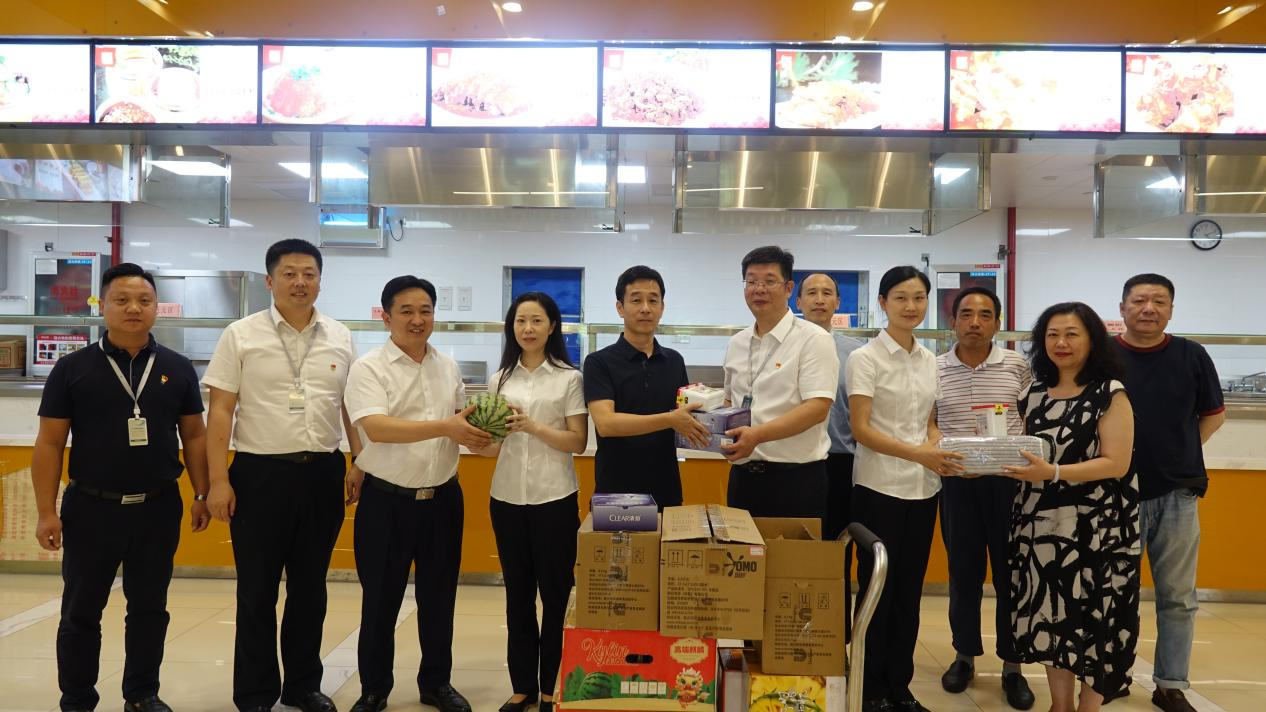 7月24日下午,飯店黨委書記、董事長譚冰同志率隊慰問一線干部職工,并將西瓜、飲料及藿香正氣液、仁丹等防暑降溫物資(藥品)送到了職工們的手中。飯店在家領(lǐng)導,工會及相關(guān)部室、子公司負責同志參加慰問活動。