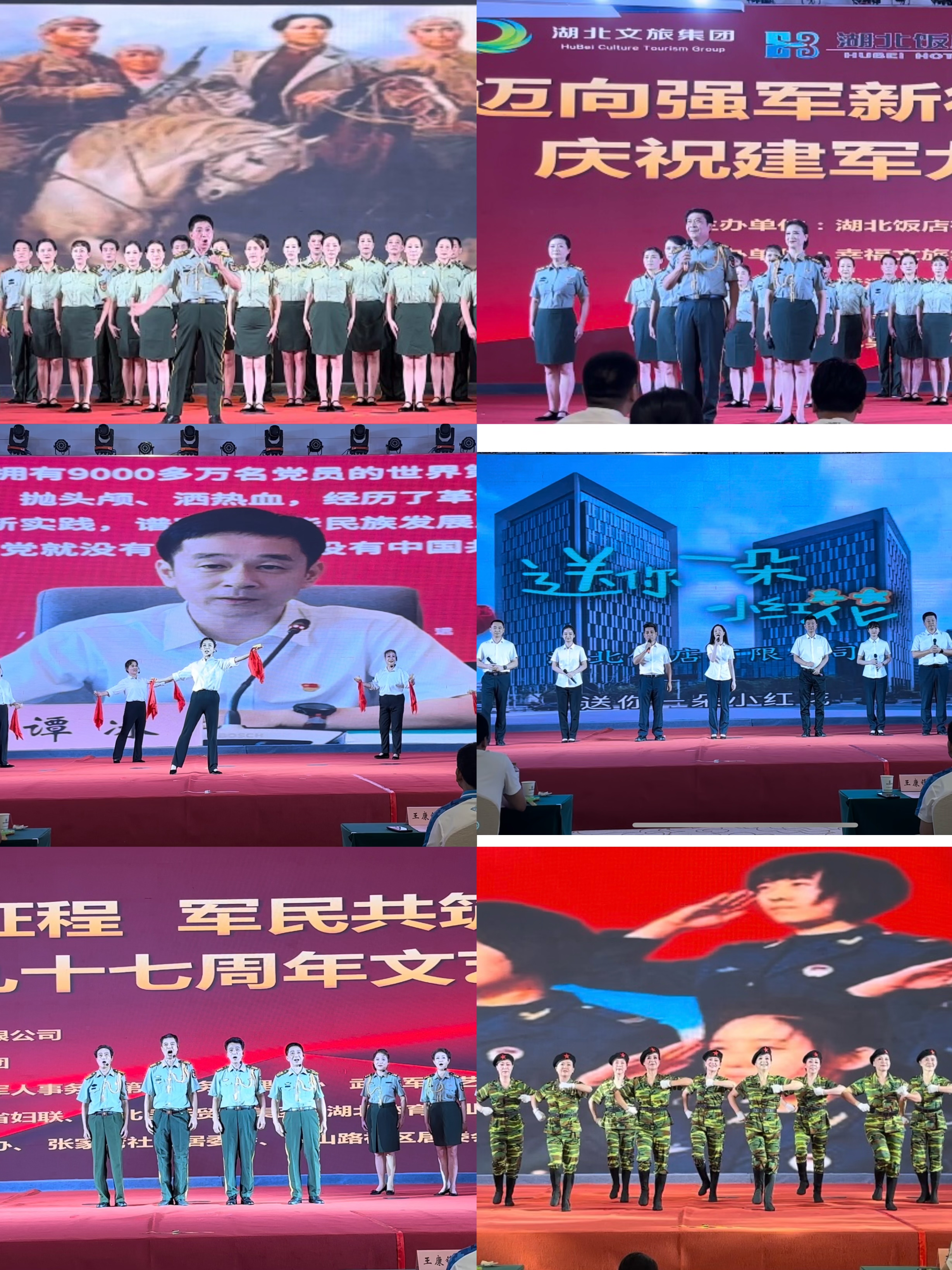 為慶祝中國人民解放軍建軍97周年,增進軍民之間魚水情,2024年8月1日,湖北飯店聯(lián)合武漢市退役軍人事務局第八服務管理中心、武漢軍旗藝術(shù)團在洪山大廈會議中心隆重舉辦“邁向強軍新征程 軍民共筑強軍夢”軍民聯(lián)誼文藝匯演。此次活動邀請省國資委相關處室,入駐單位省婦聯(lián)、國貿(mào)集團、體育集團,水果湖街道辦、張家灣社區(qū)居委會、洪山路社區(qū)居委會等單位領導及復轉(zhuǎn)軍人現(xiàn)場觀演。